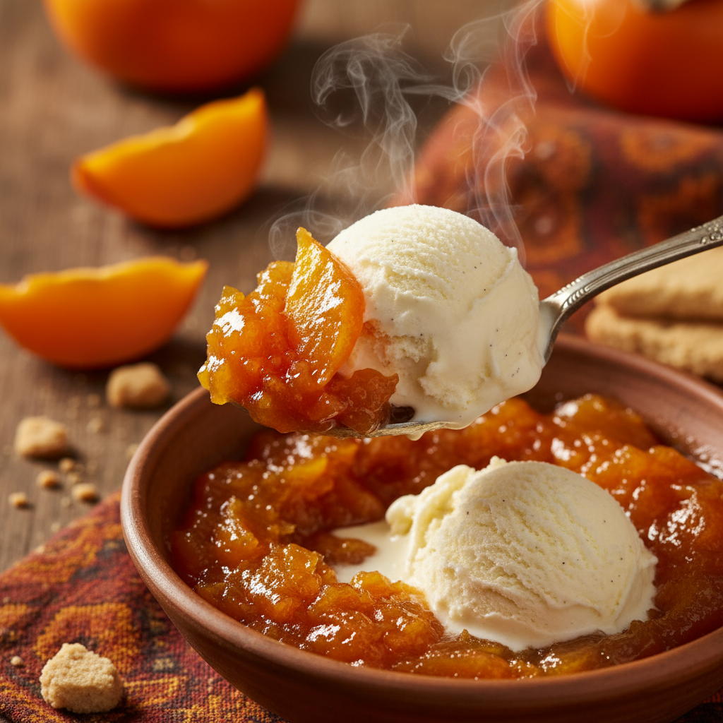 美味しい柿のコンポート(バニラアイス添え)|秋の贅沢デザートレシピ