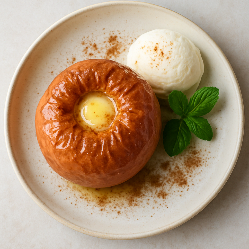 温かい焼きりんごと冷たいアイスの組み合わせは最高。バニラ、シナモン、キャラメル風味のアイスが特におすすめです。