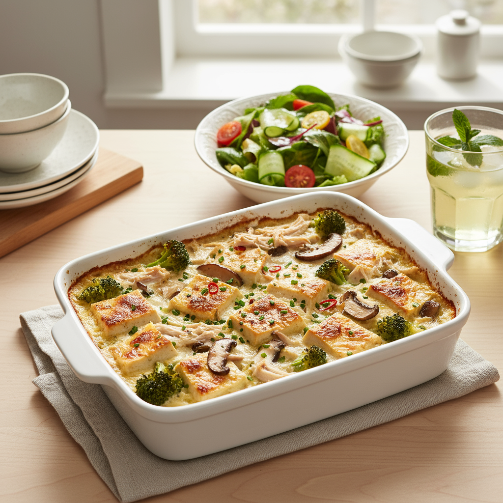 焼きたてはもちろん、少し冷めても美味しいのが豆腐グラタンの魅力。 パンを添えてランチプレートに、またはサラダとスープを合わせてディナーにも。 冷凍保存もできるので、作り置きにもぴったり。 朝食やお弁当にもアレンジしやすい万能メニューです。