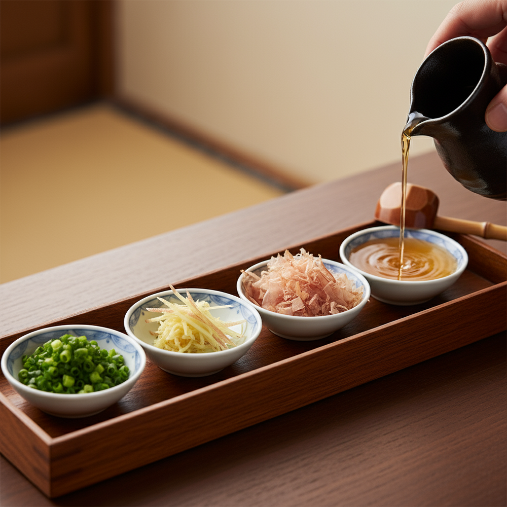 温めた豆腐をおたまでそっとすくい、湯気ごと器に盛ります。 薬味を添え、たれをかけたら完成。 一口食べれば、昆布だしの香りと豆腐の甘さが広がり、じんわりと体が温まります。 シンプルなのに心にしみる、究極の“癒し料理”です。